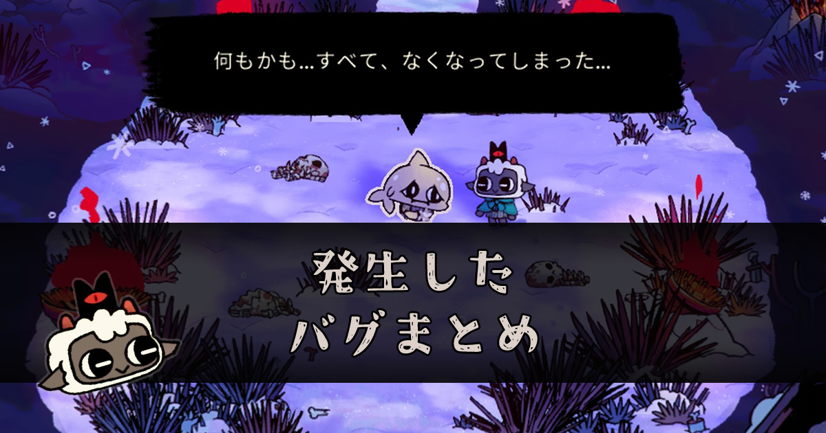 Cult of the Lambはバグが少し多く、中には進行不能バグやゲームが快適に遊べないレベルのものも存在します。この記事では実際に見つけたバグや、あれば対処方法をまとめています。 もしバグを発見したり、バグではなくきちんと対処方法がある場合、この記事のコメントやXのDMにて発生したバグの内容とゲームのプラットフォーム(PS、Steam、Switchなど)教えていただける・本記事で紹介させていただけると嬉しいです!! 【PS5】重すぎてゲームどころではなかったバグは解消 前回のDLC発売以降から、PS ...