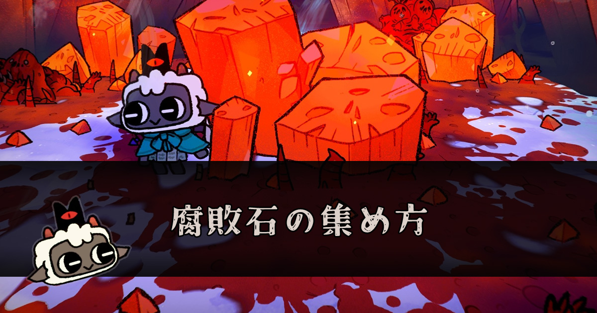 Cult of the Lamb(カルトオブザラム)の腐敗石の集め方を紹介。教団・聖戦で腐敗石を効率的に集める方法や使い道をまとめています。 腐敗石の効率的な集め方 【教団】腐敗石鉱を信者に掘ってもらう DLCのストーリーを進めていくと、神聖なる掲示の2段階目に「腐敗石鉱」が、3段階目に「腐敗石鉱Ⅱ」追加されます。これを建築し、信者に作業してもらうことで腐敗石を効率よく集めることが可能です。 腐敗石鉱の建築に腐敗石が必要 腐敗石鉱の建築に腐敗石を8個、Ⅱへのアップグレードには20個使います。腐敗石鉱で得ら ...